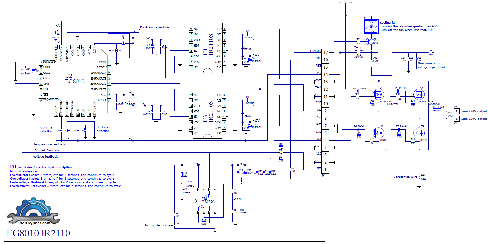 - EG8010+IR2110S Sinusoid inverter (low power frequency transformer)