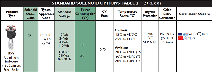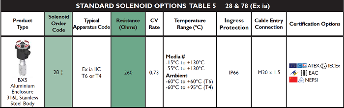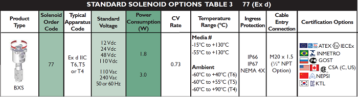 | Solenoid Approval | A | ATEX/IECEx Dual Certified/Labelled |