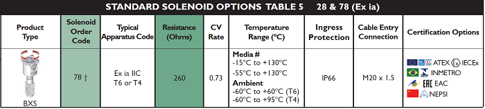 | Solenoid Approval | A | ATEX/IECEx Dual Certified/Labelled |