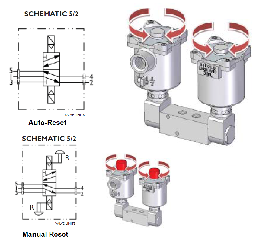 | Model Code: BXS-04 5/2 Indirect Acting (Auto & Manual-Reset) | ||