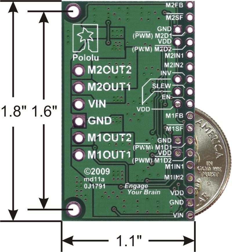 January 2022 availability update: This product has been affected by the global parts shortages, and we do not know when we will be able to make more, so we are not accepting backorders at this time. As an alternative, we recommend our TB9051FTG carriers, which offer very similar performance. They are available as a single carrier or as a dual motor driver shield for arduino (which can also be used as a dual carrier).