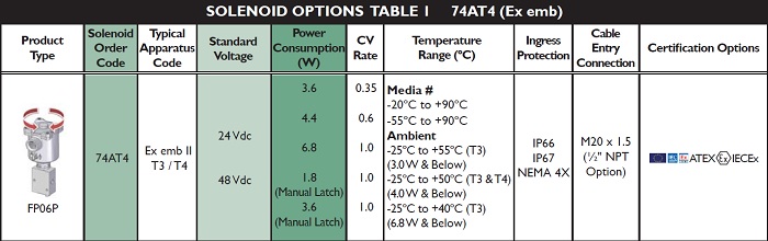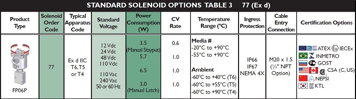 | Solenoid Approval | A | ATEX/IECEx Dual Certified/Labelled |