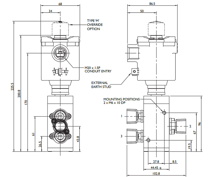 | ML | Electrical and manual required to latch or temporary manual override (3.0 Watts Ex d Only) | |