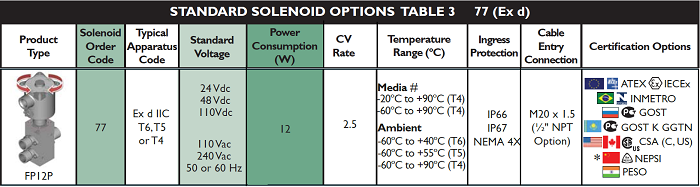 | Solenoid Approval | A | ATEX/IECEx Dual Certifi ed/Labelled |