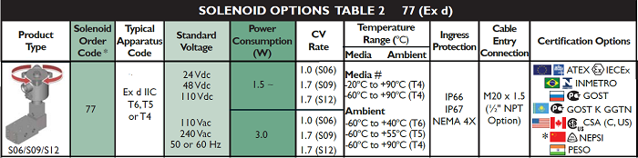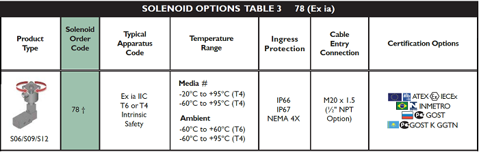 | Solenoid Approval | A | ATEX/IECEx Dual Certified/Labelled |