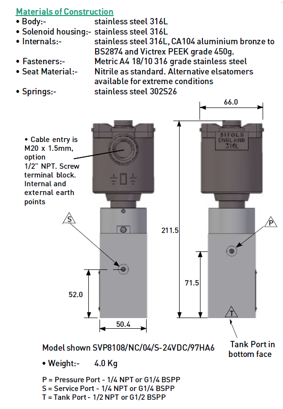 | Flow Rating | 8 | 8 lpm @ 10 bar dp |