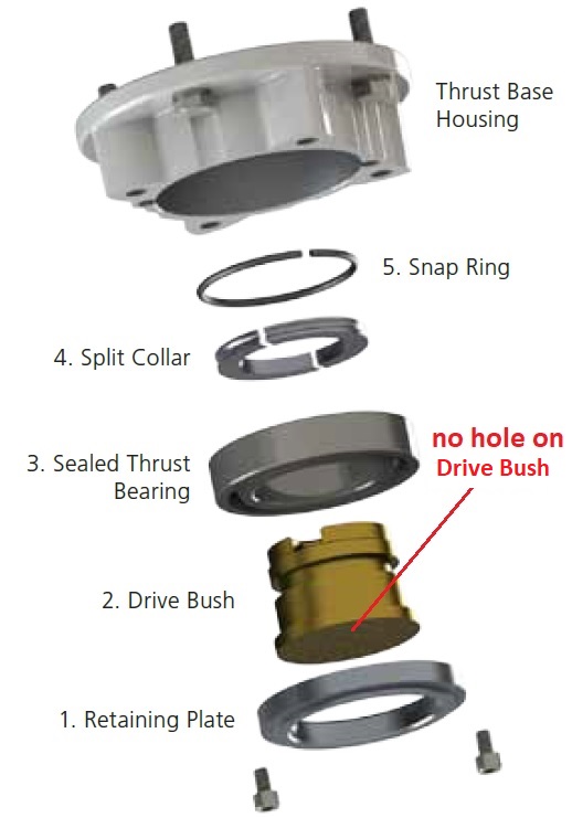 Another thing which I would like to highlight is in case will decide to order a Thrust Base Housing from Rotork, it will arrive fully assembled but without the center hole on the Bush Ring. The hole will be machining on the field, so, in this case require a turn machine.