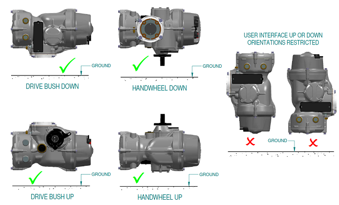 The orientation of the actuator is very important for the life of the actuator itself. For more details see figure below