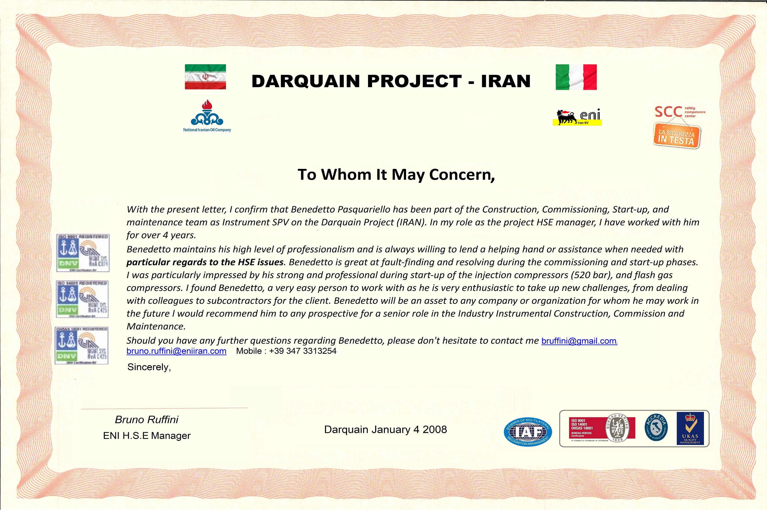 Reference letter from HSE Manager